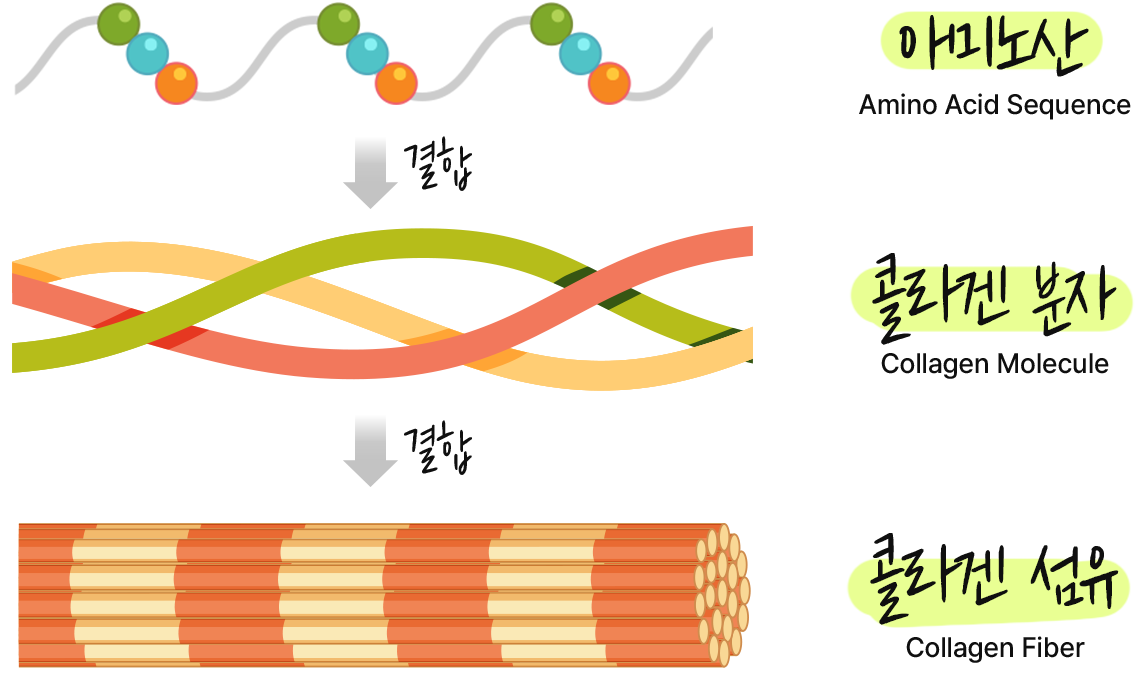 " 아미노산은 콜라겐을 구성하는 저 단위 필수재입니다 "